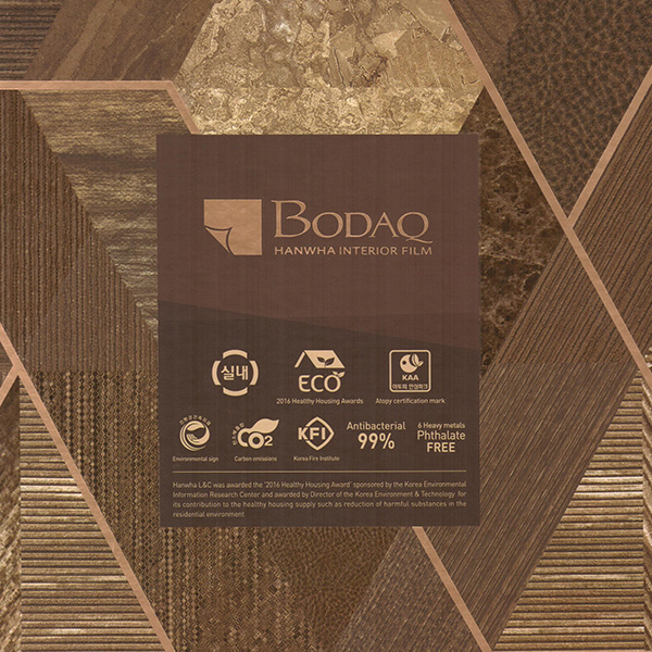 Hanwha裝飾膜是采用高端粘貼、涂膜技術的高功能產品,具有最佳的性能和品質信賴性。尺寸穩定,表層材質防水易清潔、抗菌性強,持久耐用,使用壽命長達 10 年以上;施工簡單,能縮短作業時間,具有輕、薄無接縫等特點,是有效的室內裝飾材料。是替代防火板、木飾板、金屬面、裝飾面板、油漆等的綠色新材料。