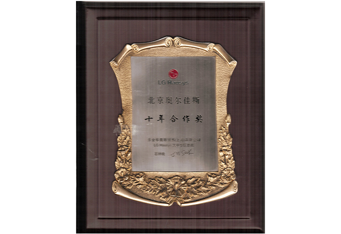 北京奧爾佳斯新型建材有限公司獲得韓國LG Hausys總部頒發的“十年合作獎”。 ...